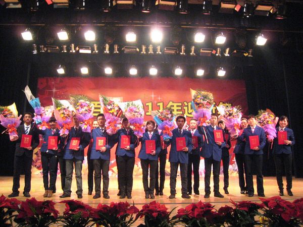 东方百货2010年度总结表彰及2011年工作动员大会在群艺馆隆重举行,图为先进部门与先进个人代表上台领奖