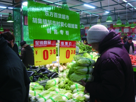 本报讯(记者钱华云 邓琳)30日,首批6000公斤胡集镇滞销娃娃菜在东方百货所属的中天街、苏畈桥、三眼桥三家超市蔬菜区专柜上市,以“零利润”面向市民销售。