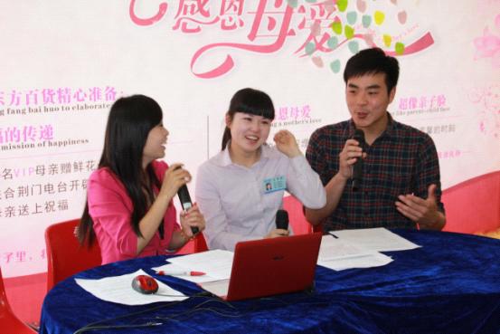 5月13日是每个伟大母亲的节日,在这个温馨的节日里,东方百货特推出“传递幸福 感恩母爱”系列活动,其中联合荆门电台开辟“母爱有声”专栏,让儿女们高调表达了对母亲的爱,同时精心挑选50名VIP顾客,以一束鲜花送上家门,将幸福传递至母亲的心中,更有“超像亲子照',定格住子女与母亲之间的亲情最温馨的时刻。东方百货用特别的感恩、特别的爱献给了广大母亲。
