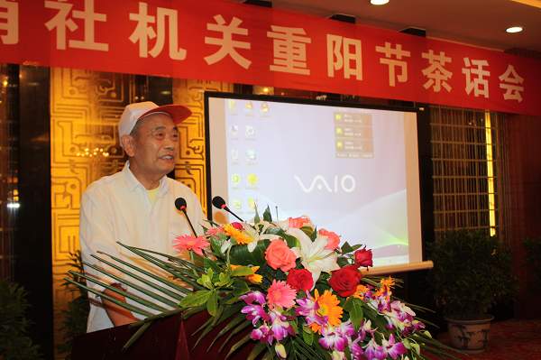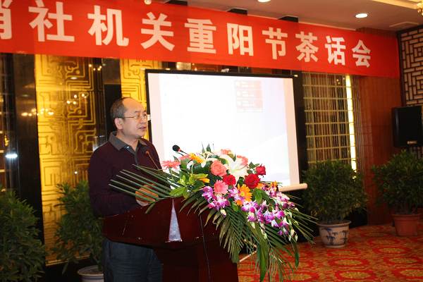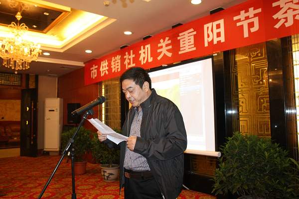 市供销社党委书记、副主任却运新主持重阳节茶话会仪式