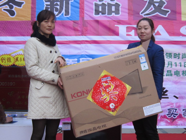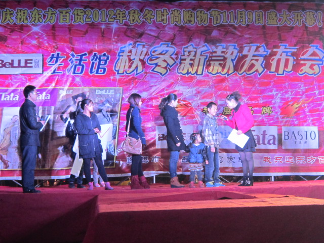 11日大门口的:舞台活动女装新品发布会和幸运大抽奖环节中,人潮涌动,活动现场,氛围浓厚,热闹非凡,喜中大奖的顾客更是喜从心来。