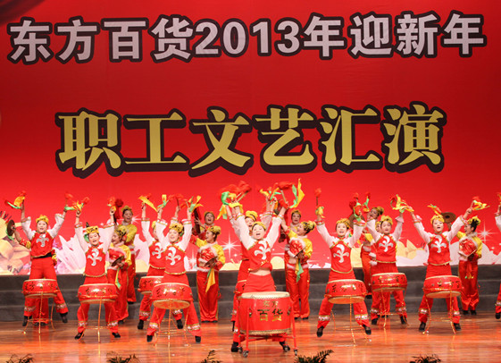 总结表彰大会后,各级领导与广大干部员工一起观看了东方百货2013年迎新年职工文艺汇演。公司总部百货、家电、超市、钟祥购物广场、京山购物广场、沙洋购物广场、掇刀购物广场等部门的员工精心准备的舞蹈、小品、情景剧、独唱等节目,表达对公司的良好祝愿及对新年的美好期盼,精彩的表演赢得了现场观众的阵阵掌声。