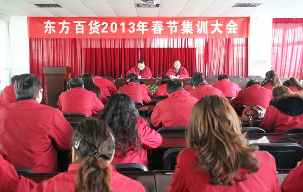 “创新管理思想,转变工作作风,狠抓队伍建设,打造清正廉明、作风正派、踏实干事、能征善战的优秀管理团队。”大年初三下午,东方百货集训动员会对广大干部员工提出了新年新希望、新年新要求,同时,对2013年全年规划作出了具体的工作指导及工作安排。