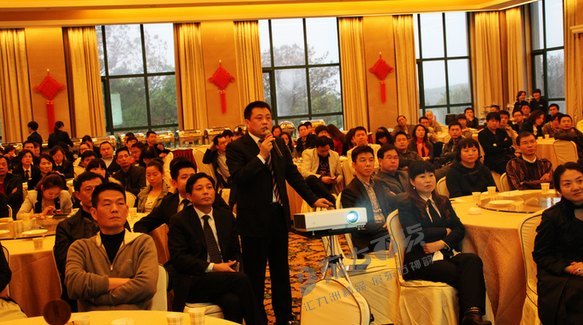 服饰节厂商答谢晚宴上副总经理田雄就总部调整升级做讲解