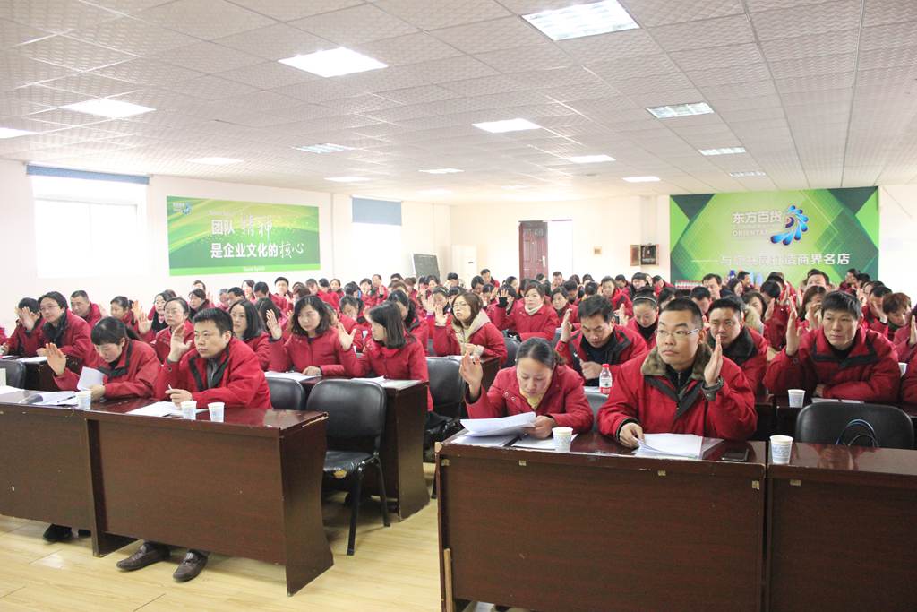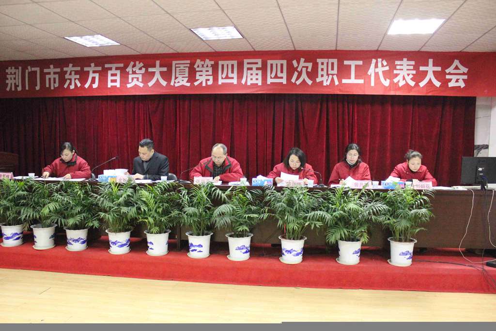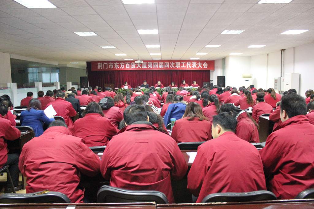 12月27日,荆门市东方百货大厦第四届职工代表大会第四次会议在七楼会议室胜利召开。公司总经理张兴平同志、工会主席邹诗娥同志、行政执总金柱平同志以及公司其他职工代表共98人参加了会议。《总经理工作报告》、《工会工作报告》、《2014年财务工作决算及2015年财务工作预算报告(草案)》、《2015年经营责任制(草案)》等工作报告及各项决议均立足于公司现状与面向市场发展相统一的原则,为公司新一年工作的顺利开展指明了方向。