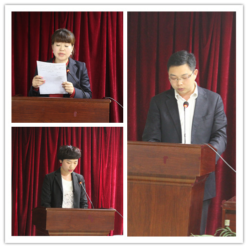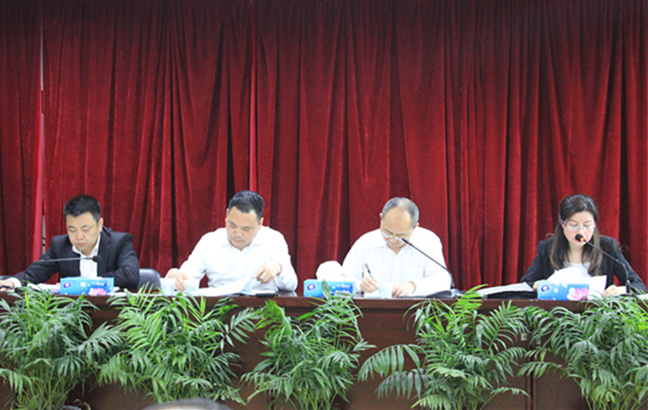 图为行政执总金柱平、业务执总田雄、总会计师曾凡梅分别做工作汇报
