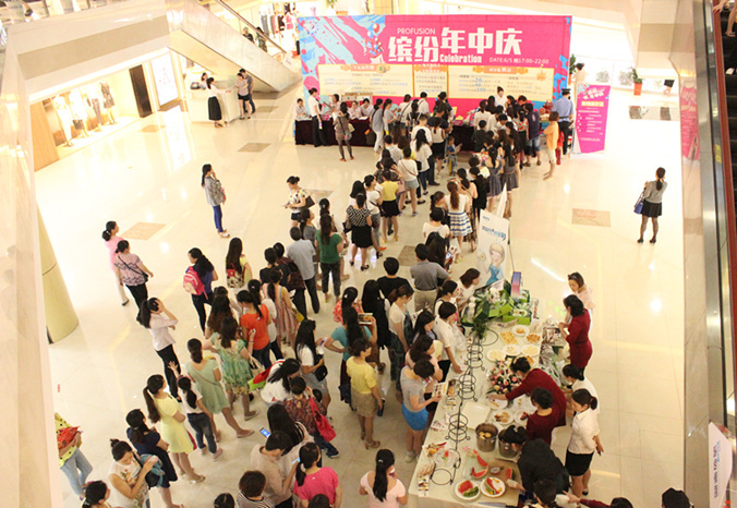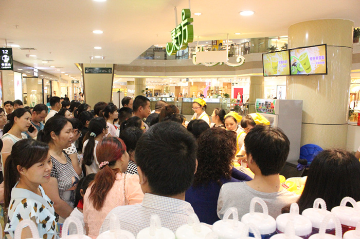再看东方百货A座3楼果平方处,VIP们凭邀请函排队拿号,等待领取免费的鲜榨果汁,真是诱惑满满啊~既营养又美味的果汁,快到碗里来!