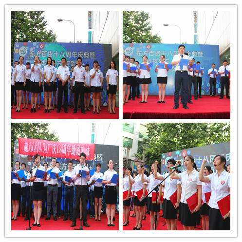 随后,百货、家电、超市、科室依次进行场庆宣誓,铿锵誓言激越澎湃,雄心壮志鼓舞人心。