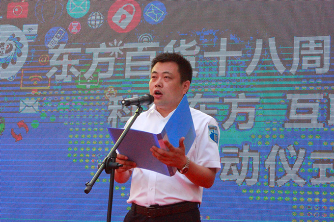 威风锣鼓擂响18周年场庆的战鼓,铮铮誓言见证东方人必胜的决心。仪式上,东方百货行政执总金柱平发表致辞,他号召公司全体干群在场庆开幕之际,要更加同心聚力,更加奋发有为,进一步深化经营改革,进一步实现精细管理,进一步提升优质服务推广绿色通道,竭尽全力为广大消费者提供更具体验、更加便捷、更加美化的购物环境。他还指出,18周年场庆的启动不仅仅是一次庆典活动的开始,也是东方百货回馈广大消费者引领全城狂欢浪潮的新起点,更是公司全力加速发展的一次新征程,在互联网科技的发展浪潮下,东方百货将与时俱进,和广大消费者共同拥抱消费新时代!