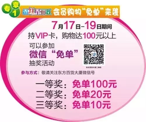 购物达100元,即可免费办理会员卡一张,并获赠精美礼品一份哦~逛东方,就是这么嗨!