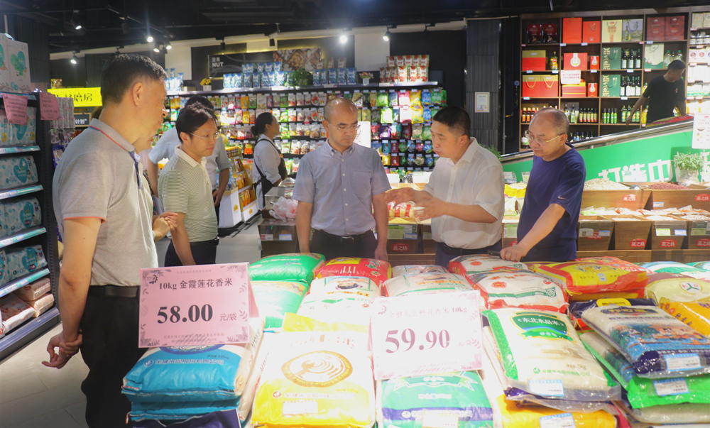 在超级生活馆,各类商品琳琅满目、品种丰富,在“荆品名门”销售专区,国宝桥米、津津香米、观音米、洪森米等产品陈列美观、应有尽有,选购产品的消费者也络绎不绝。超市负责人介绍了东方百货“荆品名门”优质大米销售专区的基本概况和销售情况,江区长对东方百货在“荆品名门”优质农产品推广工作中所做出的努力表示肯定,并鼓励东方百货继续围绕荆门本土农产品加大宣传力度,增强“荆品名门”区域公用品牌建设,力争实现企业经济效益与荆门经济发展共促进、共繁荣。