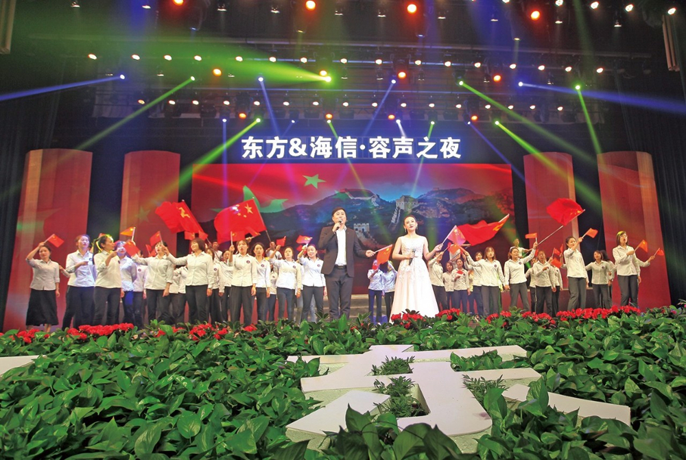 9月28日,东方百货以22周年庆典为契机,在荆门大剧院盛大举办庆典晚会,现场近千名干部职工、厂商代表挥舞着国旗,齐声合唱《我和我的祖国》,大家以独特的方式表达爱国热情,全场变成红色的海洋,歌唱祖国的声音响彻云霄。