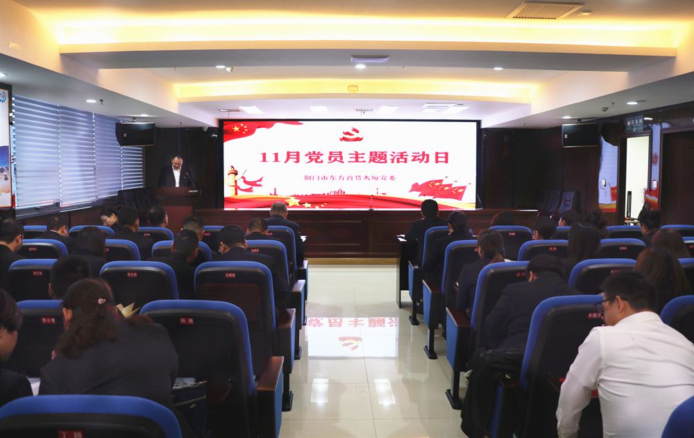 11月11日,以“11月党员主题活动日”为契机,东方百货深入推进主题教育活动,公司党委书记张兴平在会上讲党课,全体党员干部参会。