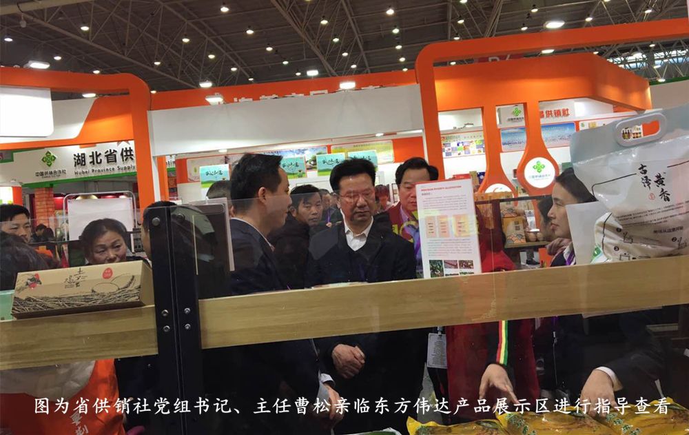 12月6日-9日,湖北东方伟达电子商务有限公司(以下简称“东方伟达”)应邀参展第28届中国食品博览会暨中国(武汉)国际食品交易会(以下简称“食博会”)。省供销社党组书记、主任曹松亲临东方伟达产品展示区进行指导查看。