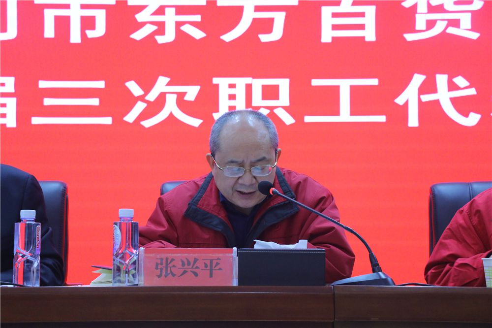 最后,公司党委书记、总经理张兴平同志致闭幕词,他强调,各部门要精心组织,认真学习领会职代会报告精神;要凝聚共识,切实推动企业高质量发展;要励精图治,确保全年目标任务圆满完成。全体干部职工要齐心协力、砥砺前行、团结奋进、矢志不移,用勤劳与智慧开创东方百货更加美好的明天。