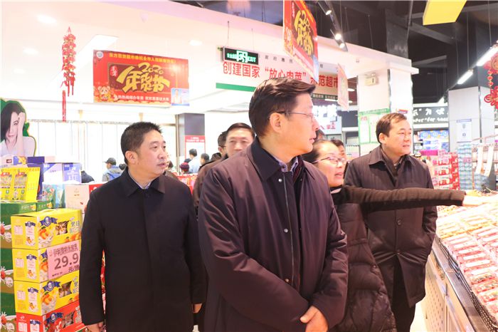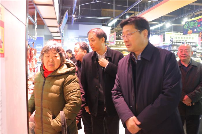 1月17日上午,副市长丁岱到东方百货惠民农贸超市检查稳价保供和安全生产情况,市政府副秘书长王娈、市商务局、市市场监管局等单位主要负责人、市供销社党委书记、主任王卫华、东方百货主要负责人陪同检查。