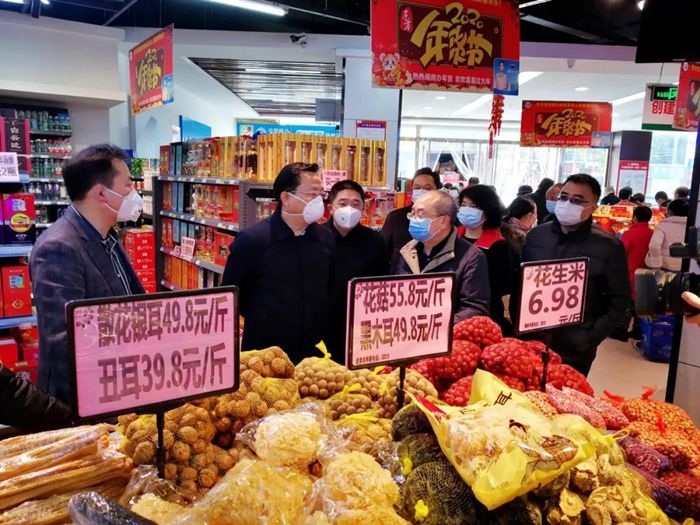 1月31日(正月初七)上午,市委副书记、市长孙兵到东方百货惠民农贸超市石化店、掇刀购物广场开展调研。掇刀区区长周俊杰、市商务局局长朱延琳参加调研,市供销社党委书记、主任王卫华、东方百货主要负责人陪同检查。