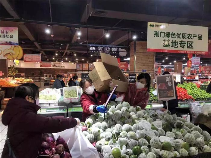 走进掇刀购物广场,大个的洋葱、红彤彤的西红柿、堆成小山样的西葫芦……各类生鲜蔬菜摆满了货架,生活物资供应充足,价格实惠,提醒市民保持距离、注意个人卫生的广播在卖场重复播报,为做好疫情防控工作起到了良好的宣传作用。