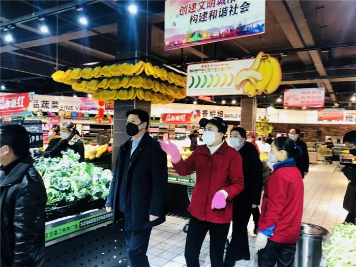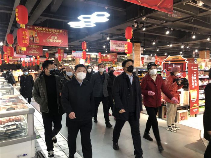 2月8日上午,副市长丁岱深入东方百货掇刀购物广场检查保供及疫情防控情况。市政府副秘书长王娈、市商务局、市市场监督管理局主要负责人,市供销社党委书记、主任王卫华陪同检查。