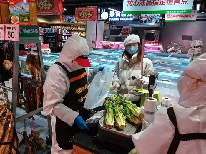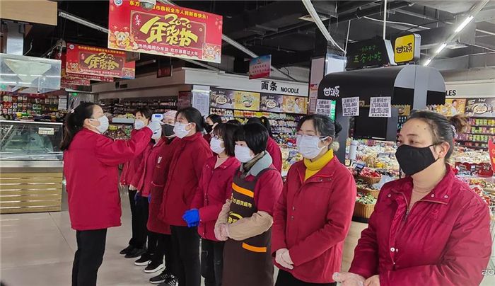 在这场疫情阻击战中,超市是居民生活的重要补给站。作为全市定点保供超市的主力军,东方百货40余家超市门店坚持营业并始终将安全防控工作一丝不苟的落实到每一处细节。