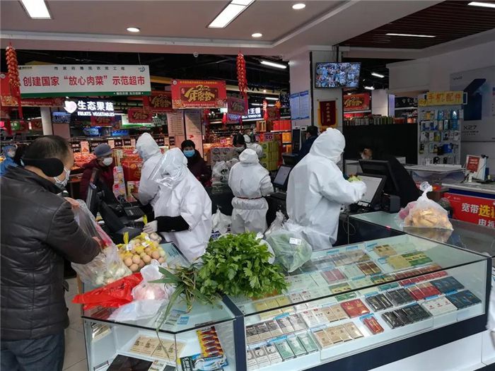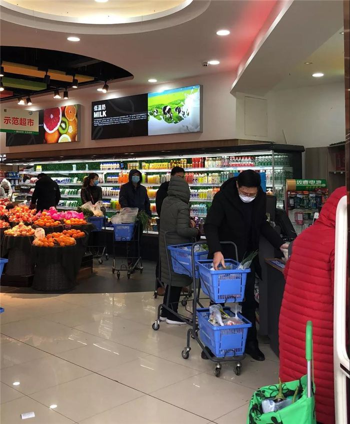 为避免客流过于密集,超市及时增加过称台及收银人员,广大党员干部主动深入一线参与疫情防控工作,确保各项工作快速高效、井然有序。