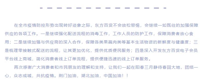 东方百货分店在行动丨"为抗疫英雄的饮食添滋味!" 东方百货京山购物广场向协和京山医院捐送爱心物资