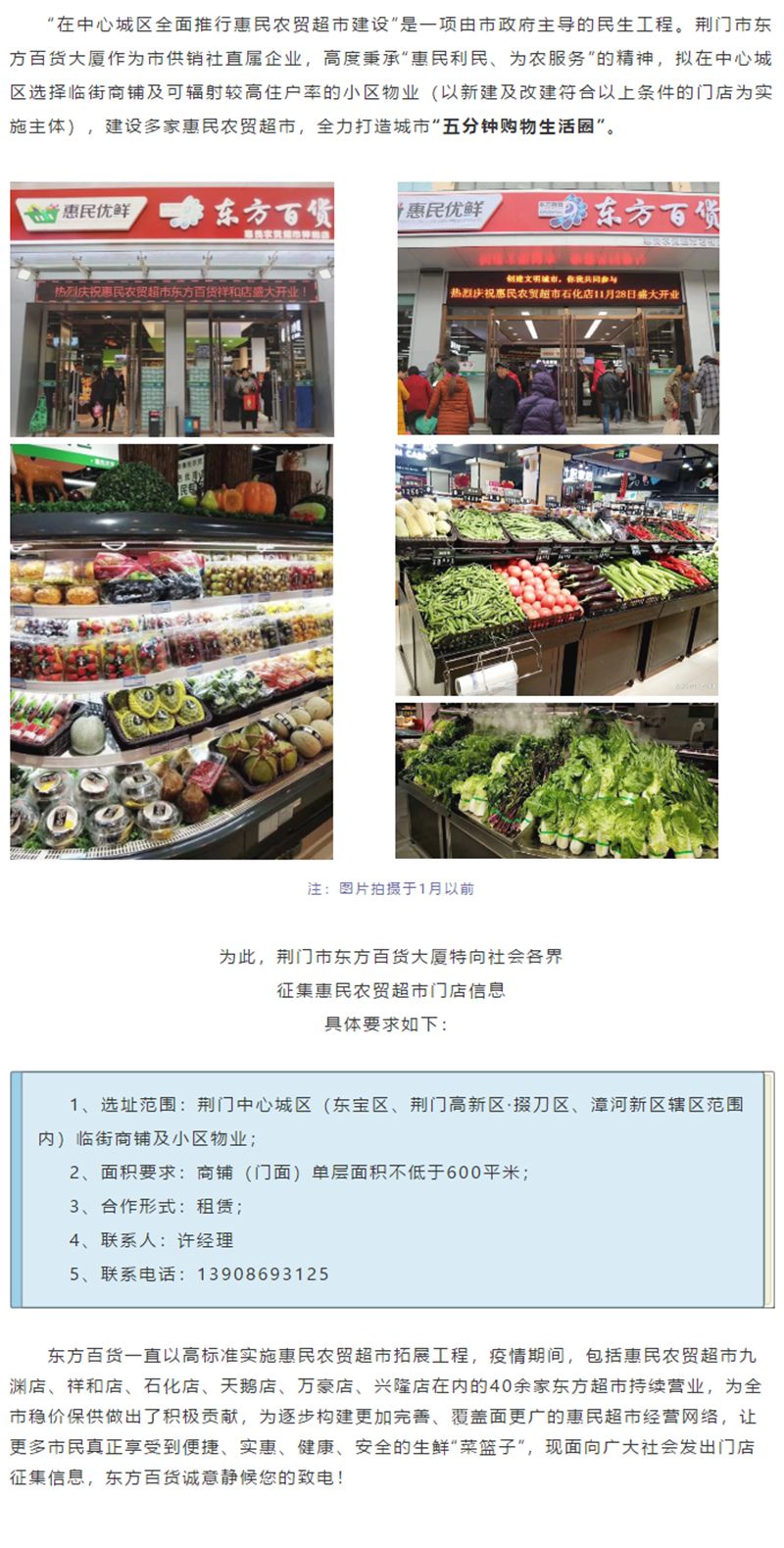 荆门市东方百货大厦面向荆门城区征集惠民农贸超市门店信息的公告