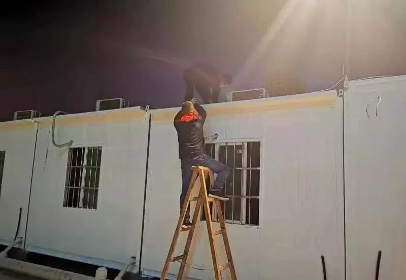 此次援助,时间紧,任务重,且面临医院尚未通电、夜晚施工等不利环境。东方家电售后员工在空荡的板房内,举着昏黄的手电爬梯登高,摸索着摆放外机,连接管线,吊装室内机……历经三个小时,空调全部安装完毕,并成功运行。