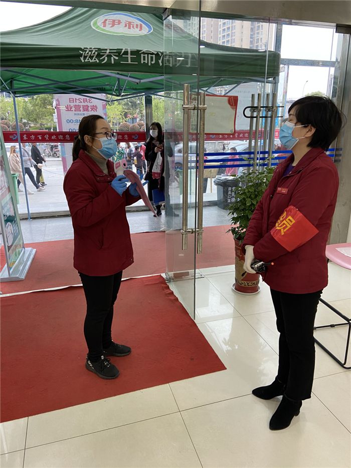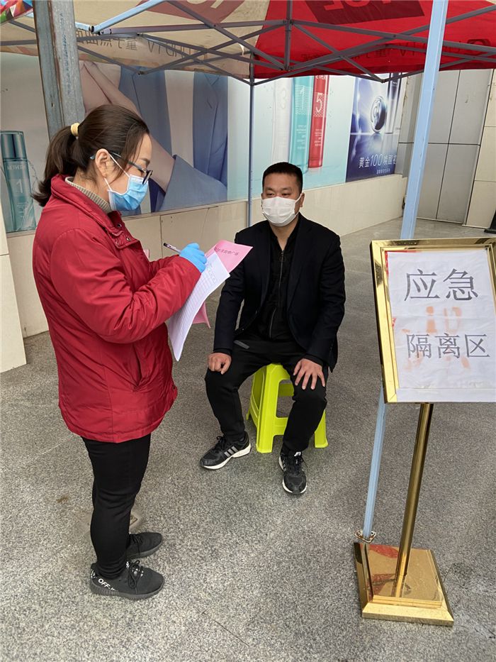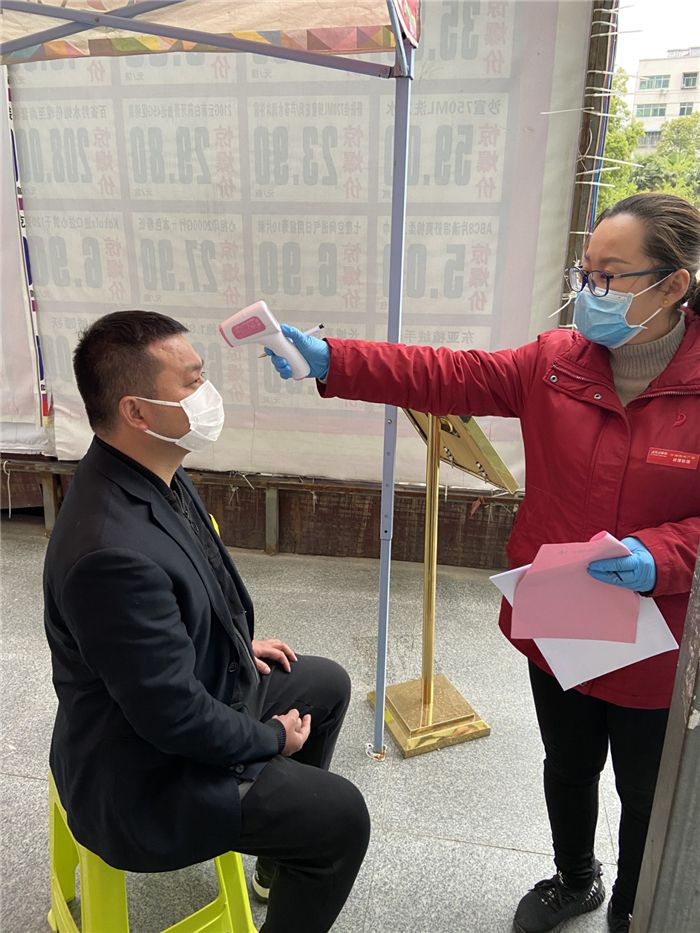 工作人员对发热顾客进行资料登记,请顾客稍做休息再复查体温