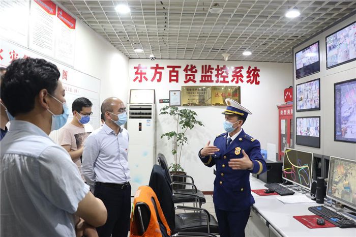 在地下监控室,江区长认真查看了智能监控系统设施设备及运行情况,对东方百货严格落实安全生产责任机制,健全完善安全生产监管体系,持续深入开展隐患排查工作表示了认可。并强调,要认真做好消防设施检查、人员培训和各项应急演练,为市民营造安全、有序、放心的消费环境。