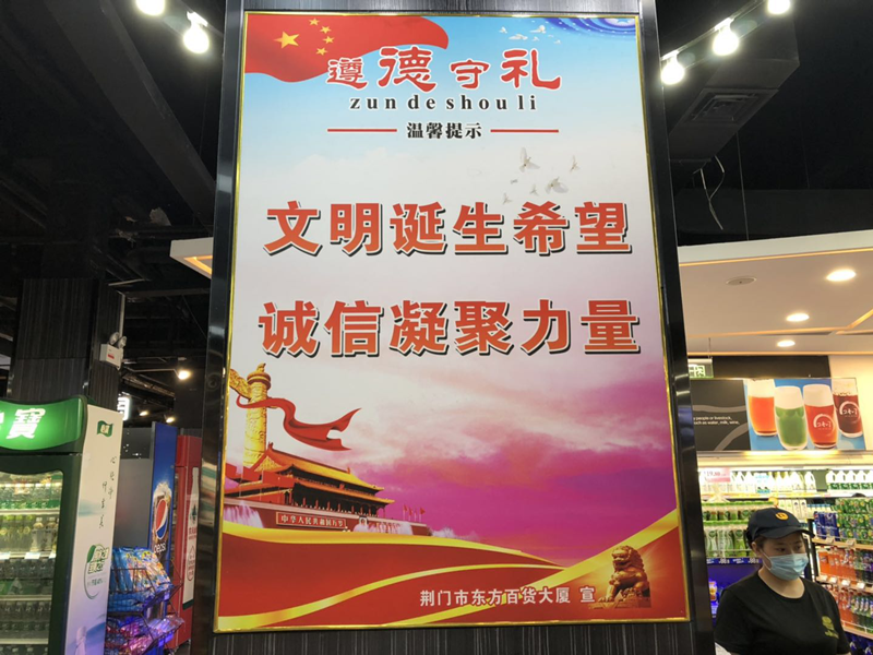 商超企业与百姓生活休戚相关,更是展示城市文明的重要窗口,商场超市购物环境的优劣,消费者的一言一行一举一动,都直接影响着一个城市的文明形象。自荆门市开展创建全国文明城市工作以来,东方百货所有城乡门店积极行动,通过加大创城宣传,设立文明监督岗、志愿者服务队等多种方式助力创城,同时东方百货不断地提高管理服务水平,不断的改善购物环境,不断加强居民文明购物意识,营造了文明和谐的购物氛围。