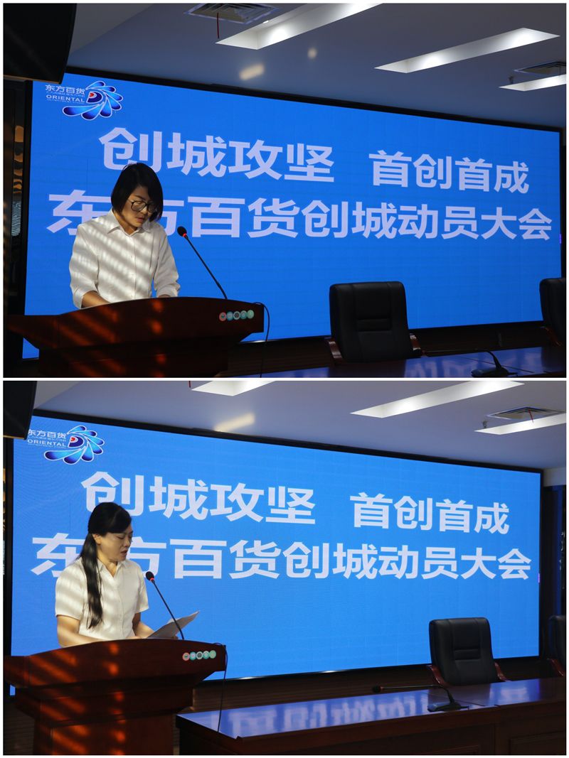 8月14日上午,东方百货在来凤大厦11楼会议室组织召开创建全国文明城市总攻冲刺动员大会,深入贯彻落实市委、市政府及市供销社下达的各项创城要求,进一步认清形势、压实责任,动员公司上下迅速行动起来,以决战的气势、冲刺的状态,助力荆门市全国文明城市首创首成。