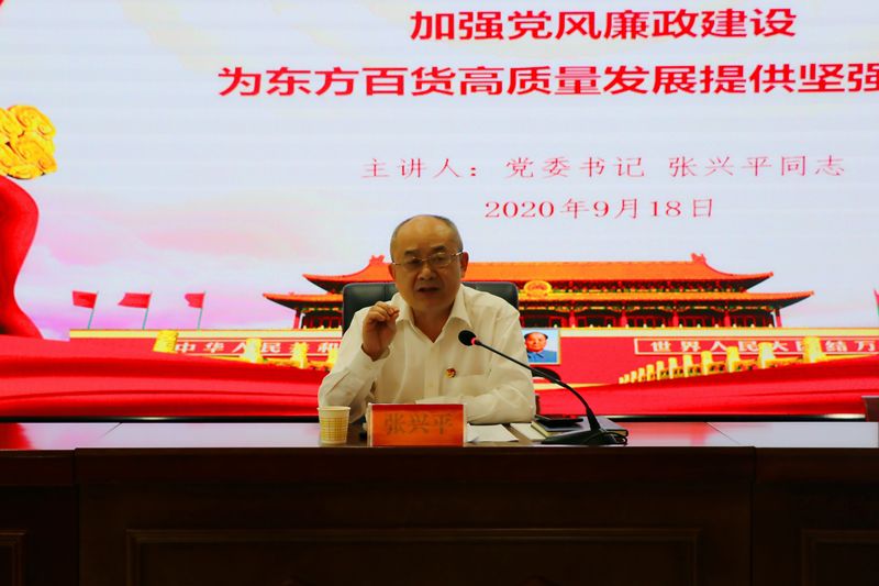 党委书记张兴平同志以《加强党风廉政建设,为东方百货高质量发展提供坚强保障》为主题为全体党员干部上廉政党课。从认清形势,切实增强做好党风廉政建设宣传教育工作的责任感、使命感;突出重点,积极推动宣教月活动取得实效;强化责任,确保宣教月活动各项任务圆满完成三个方面进行了说明。他表示加强廉政教育是落实中央全面从严治党决策部署的基本要求,是贯彻落实《宪法》、《监察法》、《政务处分法》,严明党纪法规的必然要求,更是实践“全体一盘棋、共谋新发展”、“文明荆门”创城建设的现实要求,全员必须铸牢理想信念、强化法纪意识及增强抵腐定力,深入推进廉政文化建设。