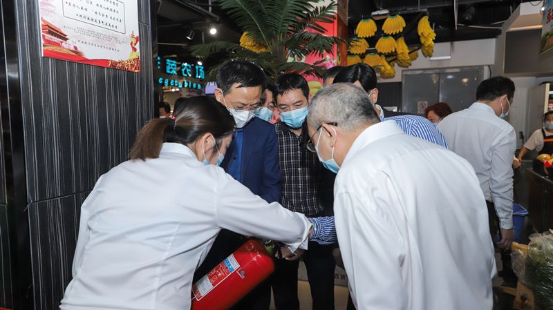 在中天街超市,各类生活物资品种齐全,明码标价,货品堆积如山。王书记对超市稳价保供工作表示满意,并要求进一步强化源头管理,确保食品安全。王书记继续查看超市灭火器等消防设施配备情况,并强调要落实落细防范措施,进一步完善安全管理制度,强化员工教育培训,做到安全规范操作。