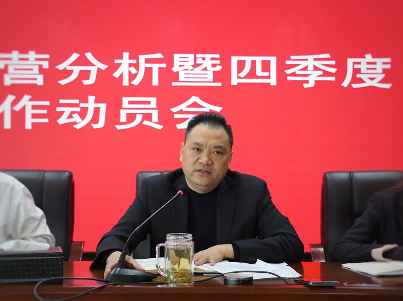最后,公司党委书记、总经理张兴平结合企业实际情况和当下经济形势做重要讲话。他针对三季度各块经营情况,对公司在经营、管理等方面取得的工作成效表示肯定。并强调,四季度是全年经济的冲刺期、决战决胜期,面对复杂多变的市场环境,大家要认清经济形势,进一步增强目标意识,在量化目标任务,务实工作举措,坚定必胜信念的同时,把培养新生力量作为首要任务,坚定不移转变经营机制,以科技领航,推动企业多元化发展。