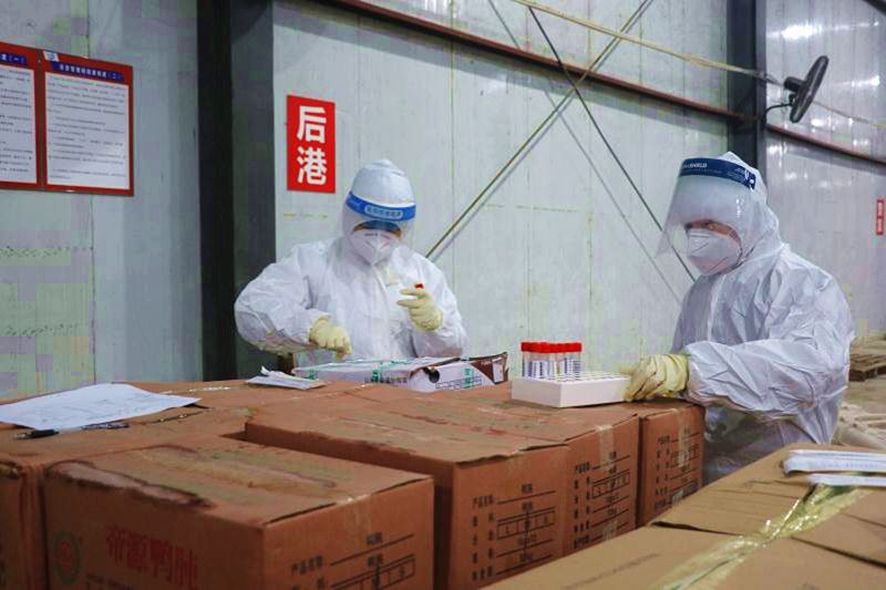 进入冬季以来,全球新冠肺炎疫情形势持续严峻,进口冷链食品核酸检测阳性频发。为切实保障全市持续向好的疫情防控形势和广大市民的身心健康,12月11日,东方百货特邀请东宝区食品药品监督管理局,通过第三方检验检测机构到物流配送中心生鲜库做冷链食品核酸检测工作。