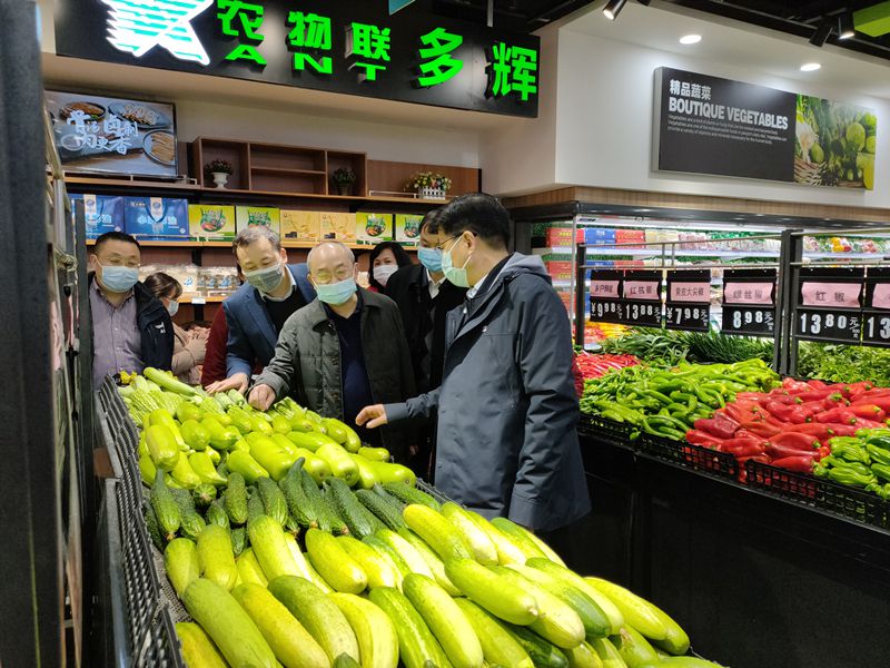 2月13日上午,副市长丁岱到东方百货惠民农贸超市检查督导春节期间市场物资保供稳价工作,市政协副主席、市市场监督管理局局长刘国芳、市政府副秘书长王娈、市商务局副局长彭孝林参与检查,市供销社监事会主任曾令军、东方百货主要负责人张兴平陪同检查。