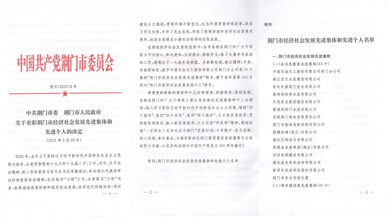 2月20日上午,荆门市优化营商环境建设暨经济工作“开门红”动员会在荆门剧院隆重举行,会议采取电视电话形式召开。会议隆重表彰了荆门市经济社会发展先进集体和先进个人,东方百货荣获2020年荆门市“经济社会发展先进集体”荣誉称号,公司党委书记、总经理张兴平参加会议并领取奖牌。