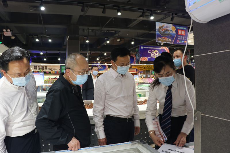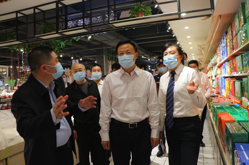 4月30日下午,市委书记王祺扬带队到东方百货掇刀购物广场检查督导“五一”劳动节前安全生产、疫情防控和国卫复审准备等工作。市委副书记、市长孙兵,市政府副市长李珩,市政协副主席柯昌军、刘国芳,市政府秘书长谢继先等参与检查,市供销社主任王卫华、东方百货主要负责人张兴平陪同检查。
