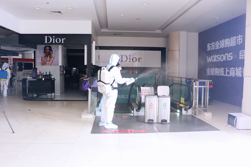商场、超市关系到群众的日常生活,人多且杂,是解除管控后疫情防控的重中之重,恢复营业前,东方百货特邀请专业团队对卖场进行环境消杀、空气净化、空调设备消毒等,对商场每一个角落、每一处公共区域,如出入口、公共通道、各门把手、各柜台、扶梯、卫生间、母婴室、收银台、存储柜、等逐一进行细致消杀,不留死角,确保商场、超市购物环境安全、舒适。
