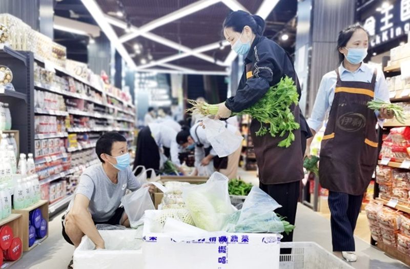 在“静音模式”下,全体党员、干部、职工在城市中逆行奔跑,上货、理货、称重、收银、配送、消杀……