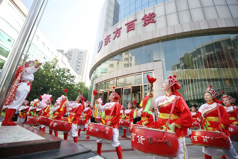 鼓,是激情四射的诗,是豪迈粗狂的舞,是刚劲奔放的魂。东方百货巾帼锣鼓有队员近200人,以激情的鼓点、恢弘的气势、铿锵的节奏和昂扬的豪情,击出了东方儿女的傲骨雄风,也打出来东方百货广阔的天地。