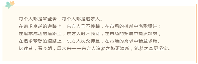 未来的东方,将抓好提质增效不懈怠,加快经营模式、管理体制、服务方式创新,为发展赋能;