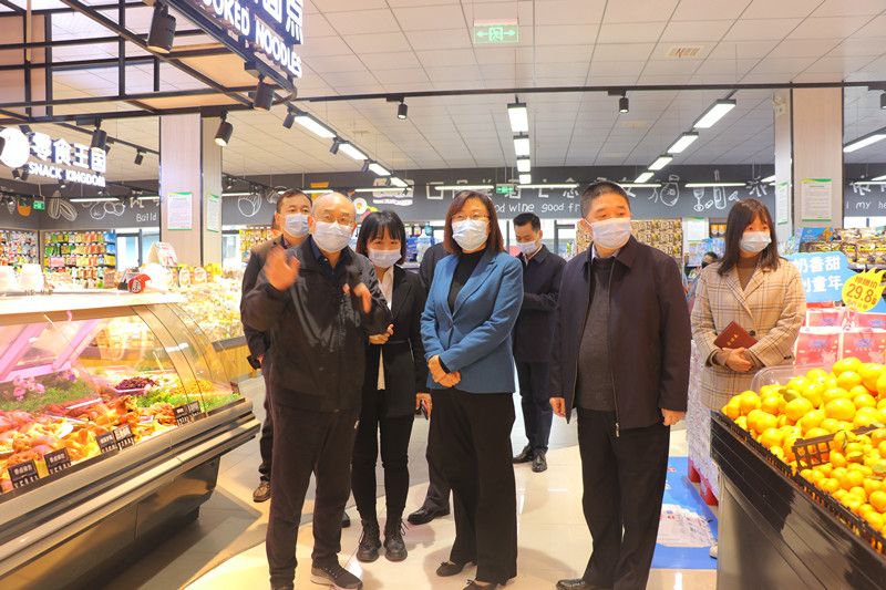 在东方百货惠民农贸超市浏河湾店,赵书记详细了解了超市内惠民专区、扶贫专区、基地专区、“荆品名门”专区的产品来源、销售现状以及经营有关情况,赵书记强调要充分发挥销售终端优势,推广全市域、全品类、全产业链的农产品区域供应品牌,引领农业产业结构转型升级,促进农产品精深加工业做大做强;要向标杆学习,创新经营模式,丰富商品品类,更好服务民生。随后,赵书记来到东方百货物流配送中心,实地察看了物流配送中心仓储管理、产品供应、物流配送等情况,她指出要时刻绷紧疫情防控之弦,扎实做好冷链物流疫情防控工作;要因时因势调整运营模式,提供线上线下双服务,实现服务群众零距离。