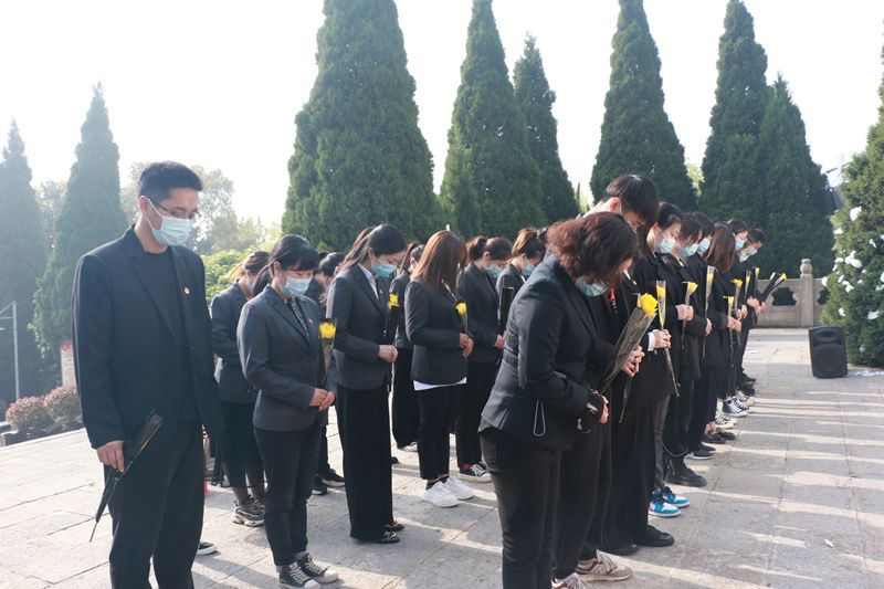 青山埋忠骨,翠柏勉英魂。烈士墓地庄严肃穆,祭扫行人纷纷不绝。东方百货青年团员们怀着崇敬庄严的心情,向先烈敬献花篮、鞠躬默哀,并在烈士碑前高举右臂,庄严宣誓:继承先烈遗志,弘扬光荣传统,增强爱国情感,争做文明青年,勤奋学习,积极工作;坚定信念,奋发进取;学党史、强信念、跟党走,高举旗帜,奉献青春,为中华民族崛起而努力奋斗!最后,东方百货青年团员依次排队瞻仰烈士墓碑,敬献小菊花,深切缅怀革命先烈的丰功伟绩,追忆革命英雄艰苦奋斗的光辉历程,祭奠革命烈士的不朽英灵。