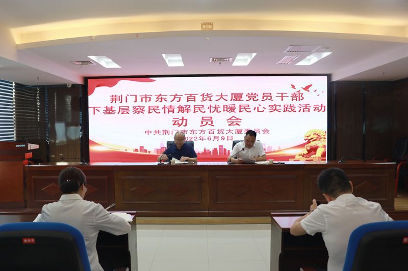 为贯彻党中央《关于推动党史学习教育常态化长效化的意见》精神,认真落实中央、省委、市委、市供销社相关会议精神,统一思想,明确目标,扎实开展好基层实践活动,6月9日上午7点,东方百货在来凤大厦11楼会议室组织召开下基层察民情解民忧暖民心实践活动动员会,大会由公司党委副书记、副总经理金柱平同志主持,全体班子成员及各部门负责人参加了此次会议。