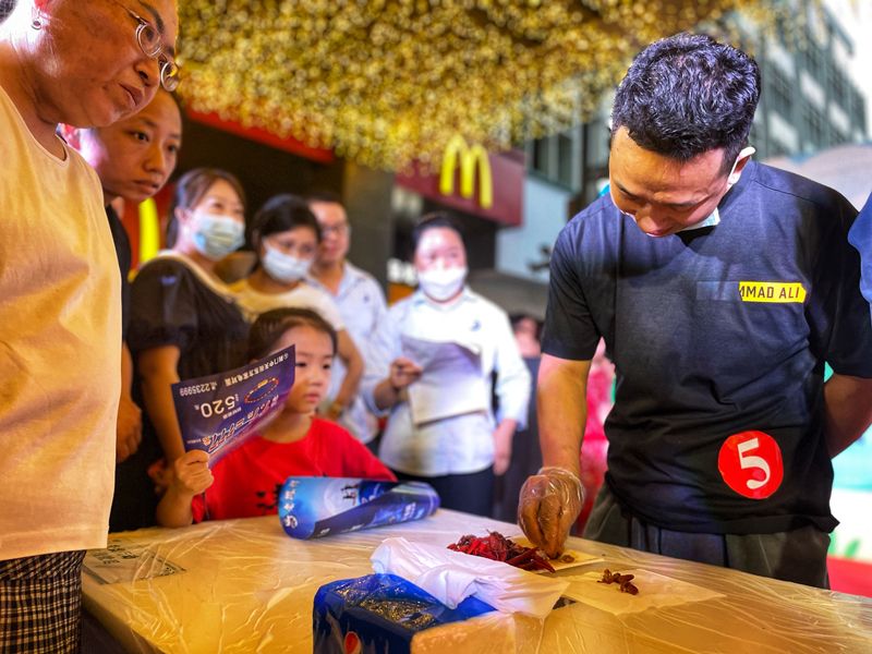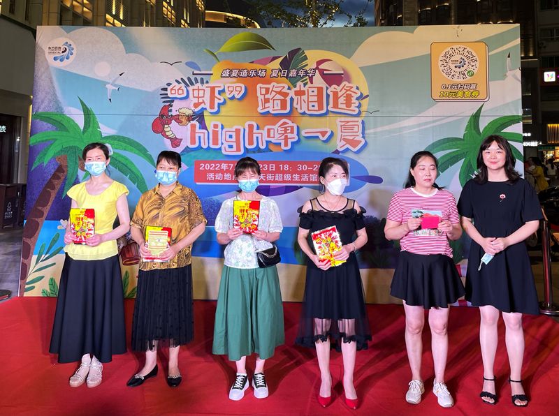 大暑已至,盛夏来临。7月22日-7月23日,东方百货在中天街百货大厦西广场开展以“‘虾’路相逢 嗨‘啤’一下”为主题的纳凉晚会,晚会在掌声中拉开序幕。活动现场,灯光璀璨、人头攒动、热闹非凡;单手抓酒免费喝、单手剥虾赢挑战、0.1元扫码送10元美食券以及互动小游戏等趣味性活动应有尽有,燃爆全场,让您在吃喝玩乐购中,尽享花样生活,在“趣味”舞台中,点亮城市“夜经济”。