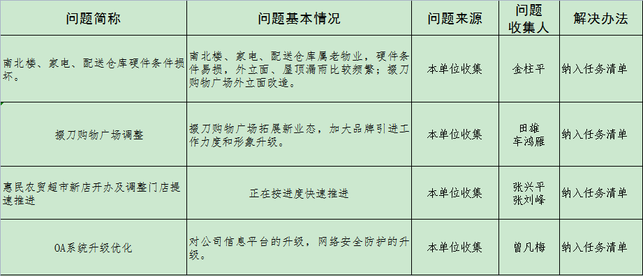荆门市东方百货大厦下基层察民情解民忧暖民心实践活动问题清单