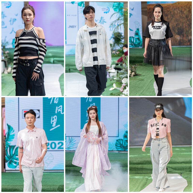“款式运动百搭,渐变满印潮流亮眼,进口防晒纱使防晒更持久,短袖两侧撞色撞色拼接设计,时尚新颖,后幅透气网眼拼接,韩国进口中空纱线,吸湿速干;香风外套采用特殊的网格面料代替传统小香风面料增添了时髦感,稍带垫肩的阔型显得人精神气十足,增添气场的同时又不失女人味,牙刷绣体现了工艺的细致感;音符印花连衣裙通过满身印花的形式体现在单品上,仿佛全身跳动的音符,俏皮又灵动,充满艺术气息,大裙摆加高腰设计,显高又优雅;珈仕达独有的轻套西,采用独家研发黑科功能,棉感舒适,防泼水,防油污,时尚流行的暗棕色,百搭显年轻,通勤差旅场合可轻松应对……”在主持人的介绍下,一件件饱含春日色彩的服装在T台上一一呈现,每个模特、每件衣服都勾勒着一个又一个动人的品牌故事,一针一线、一剪一尺,都尽显智慧和匠心缔造的一个又一个经典的品牌传奇。