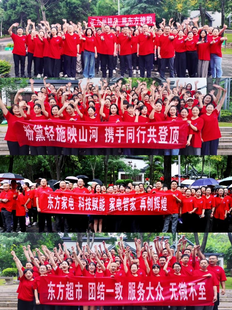 成功登顶岚光阁后,各部门以团队为单位,在雨中喊出了振奋人心的口号。“砥砺前行攀高峰!”“凝心聚力创辉煌!”……一句句铿锵有力的誓言,回荡在山谷之间,展现了东方人追求卓越、再创辉煌的坚定决心。现场气氛热烈,士气高昂,大家纷纷合影留念,记录下这一难忘的时刻。